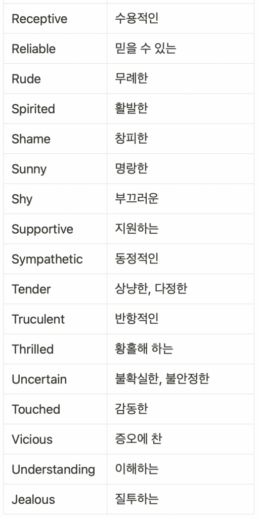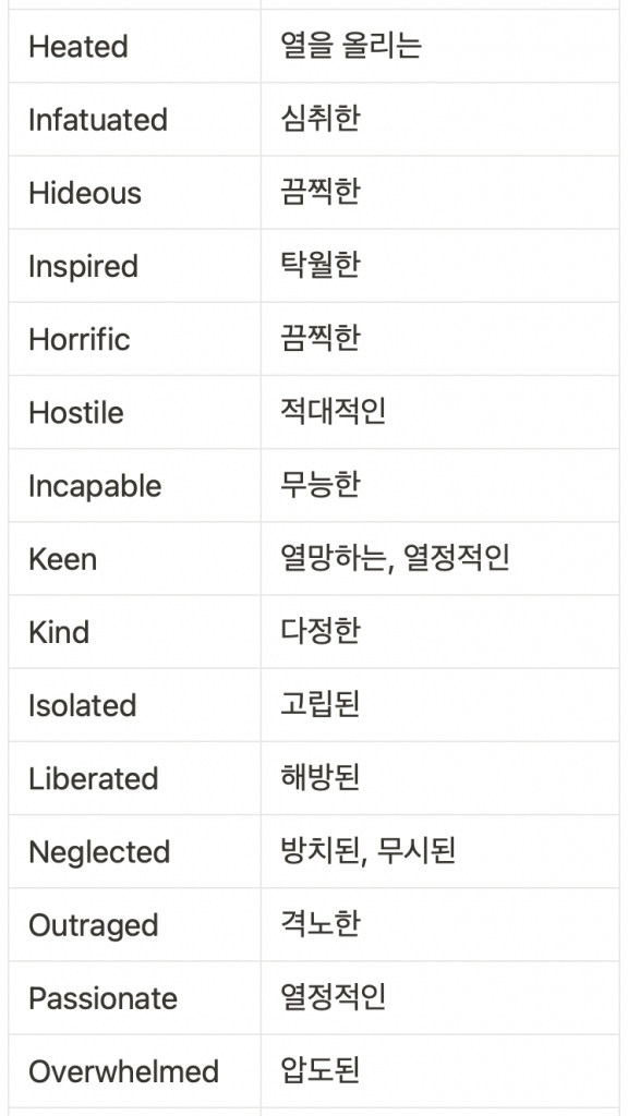- 2024.07.25 사람의 감정을 표현하는 단어 (영어/한국어)